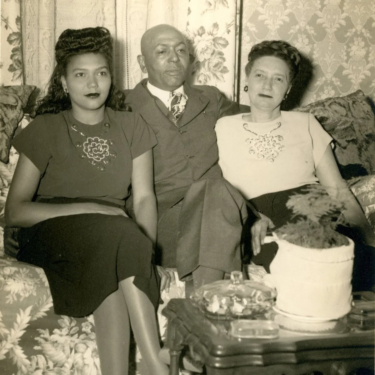 Addison Family Photograph of William Addison, his wife, and daughter inside their home. Addison founded the Addison Funeral Home in 1925.